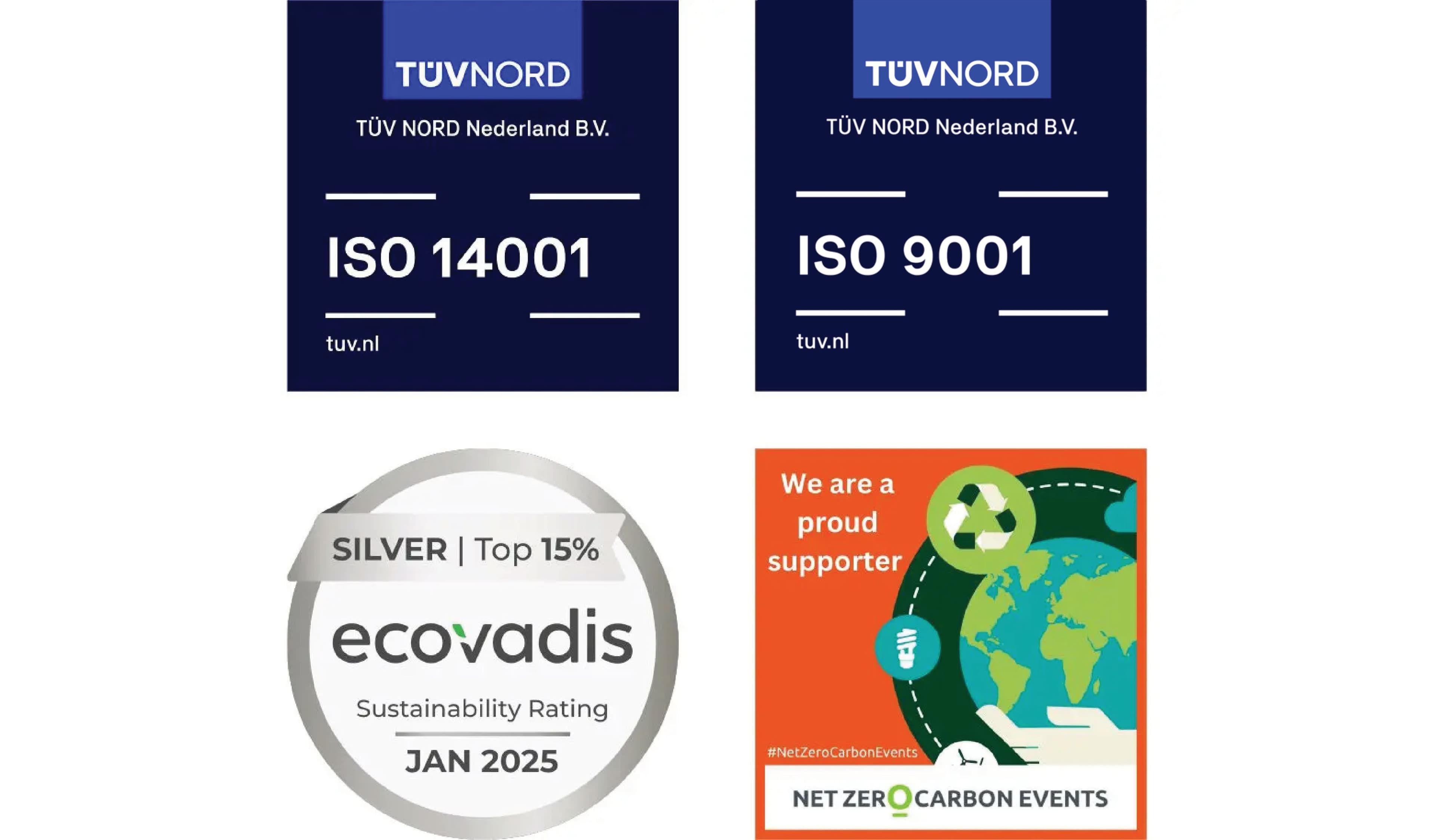 Onze certificeringen laten zien dat we niet alleen beweren duurzaam te werken, maar dit ook aantoonbaar doen. Met ISO 14001 voldoen we aan de internationale norm voor milieumanagement en sturen we actief op het verkleinen van onze impact. Met ISO 9001 borgen we daarnaast een hoog niveau van kwaliteitsmanagement en continue verbetering van onze processen.